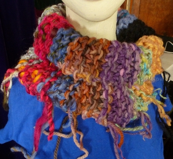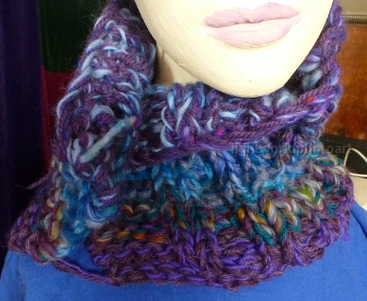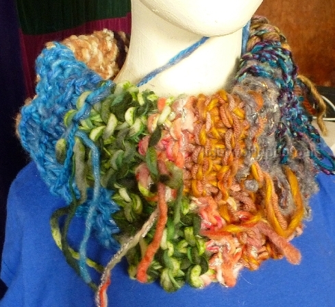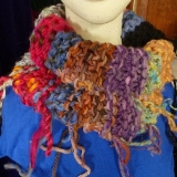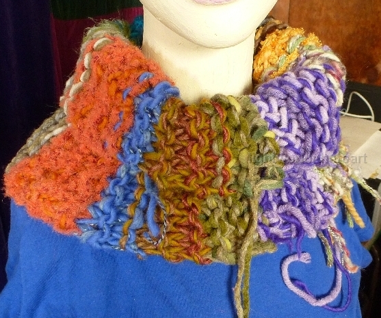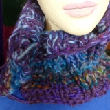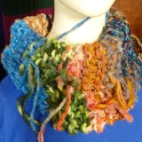 Keep warm with KnitZy one of a kind hand knit neck warmers in colorful designs.